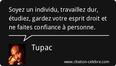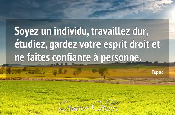 Soyez un individu, travaillez dur, étudiez, gardez votre esprit droit et ne faites confiance à personne.