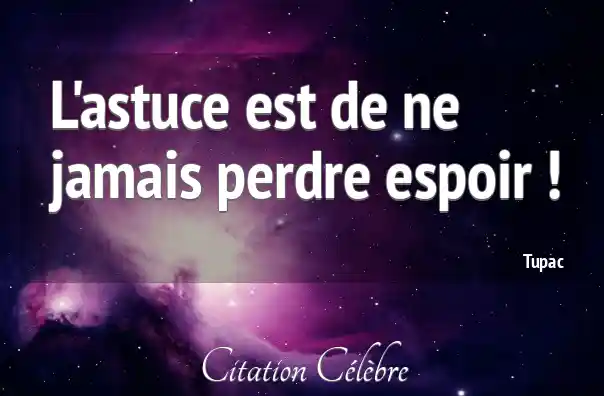 L'astuce est de ne jamais perdre espoir !