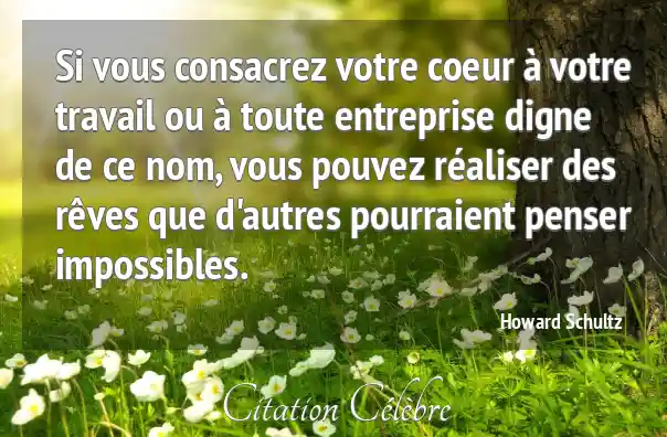 Si vous consacrez votre coeur à votre travail ou à toute entreprise digne de ce nom, vous pouvez réaliser des rêves que d'autres pourraient penser impossibles.