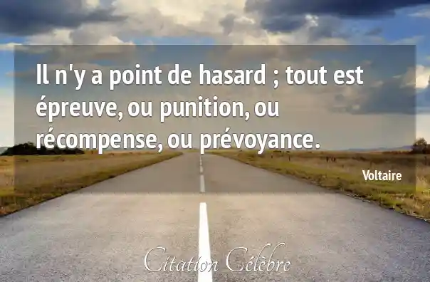 Il n'y a point de hasard ; tout est épreuve, ou punition, ou récompense, ou prévoyance.