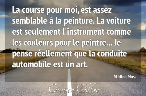 La course pour moi, est assez semblable à la peinture. La voiture est seulement l'instrument comme les couleurs pour le peintre... Je pense réellement que la conduite automobile est un art.