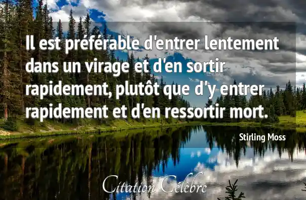 Il est préférable d'entrer lentement dans un virage et d'en sortir rapidement, plutôt que d'y entrer rapidement et d'en ressortir mort.