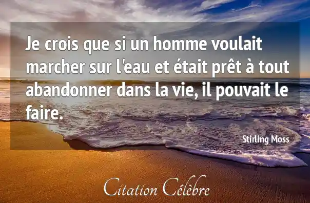 Je crois que si un homme voulait marcher sur l'eau et était prêt à tout abandonner dans la vie, il pouvait le faire.