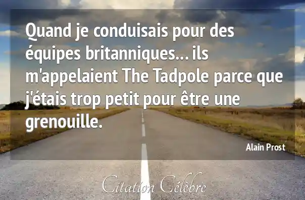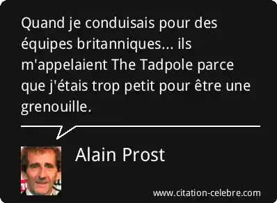 Quand je conduisais pour des équipes britanniques... ils m'appelaient The Tadpole parce que j'étais trop petit pour être une grenouille.