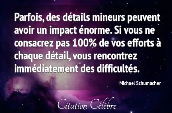 Parfois, des détails mineurs peuvent avoir un impact énorme. Si vous ne consacrez pas 100% de vos efforts à chaque détail, vous rencontrez immédiatement des difficultés.