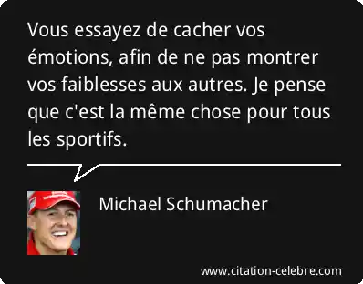 Vous essayez de cacher vos émotions, afin de ne pas montrer vos faiblesses aux autres. Je pense que c'est la même chose pour tous les sportifs.