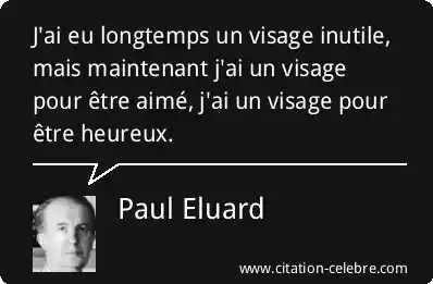J'ai eu longtemps un visage inutile, mais maintenant j'ai un visage pour être aimé, j'ai un visage pour être heureux.