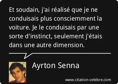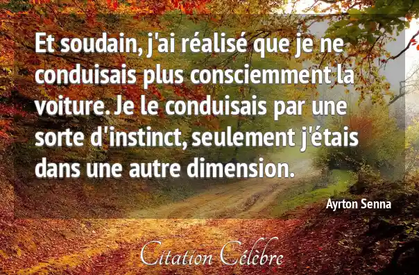 Et soudain, j'ai réalisé que je ne conduisais plus consciemment la voiture. Je le conduisais par une sorte d'instinct, seulement j'étais dans une autre dimension.