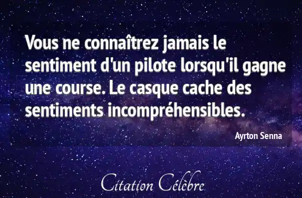 Vous ne connaîtrez jamais le sentiment d'un pilote lorsqu'il gagne une course. Le casque cache des sentiments incompréhensibles.