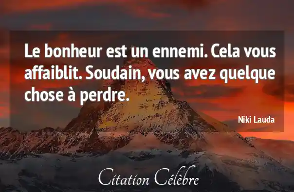 Le bonheur est un ennemi. Cela vous affaiblit. Soudain, vous avez quelque chose à perdre.