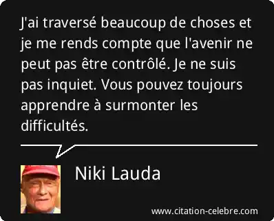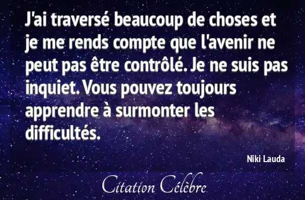 J'ai traversé beaucoup de choses et je me rends compte que l'avenir ne peut pas être contrôlé. Je ne suis pas inquiet. Vous pouvez toujours apprendre à surmonter les difficultés.