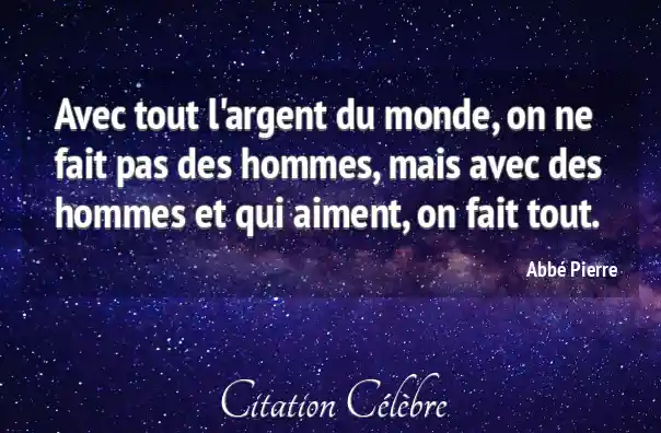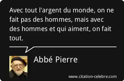 Citation Abbé Pierre argent : Avec tout l'argent du monde, on ne fait pas des...