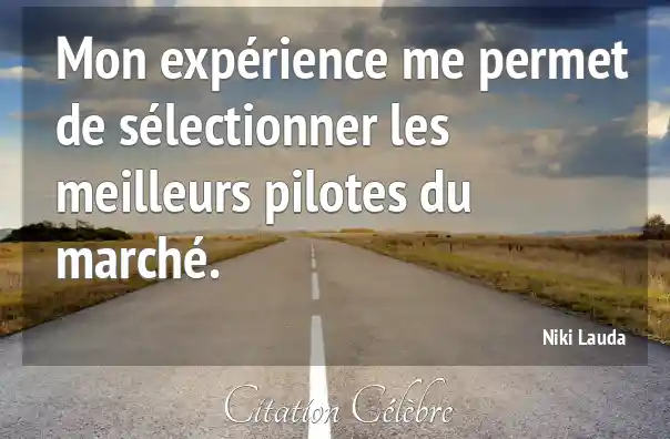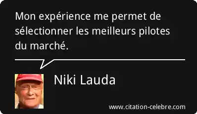 Citation Niki Lauda mon : Mon expérience me permet de sélectionner les meilleurs pilotes du...