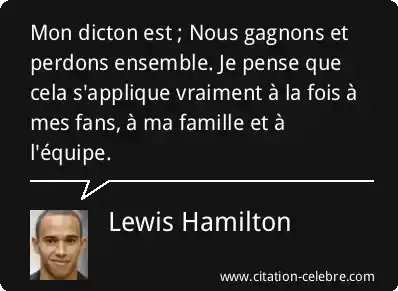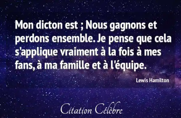 Mon dicton est ; Nous gagnons et perdons ensemble. Je pense que cela s'applique vraiment à la fois à mes fans, à ma famille et à l'équipe.