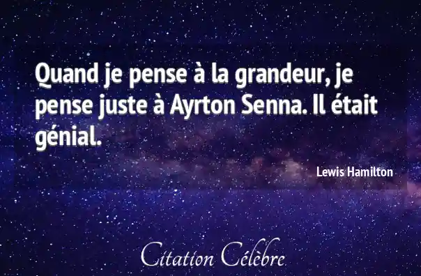 Quand je pense à la grandeur, je pense juste à Ayrton Senna. Il était génial.