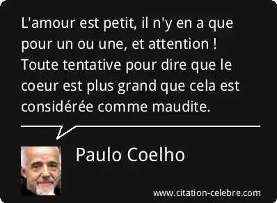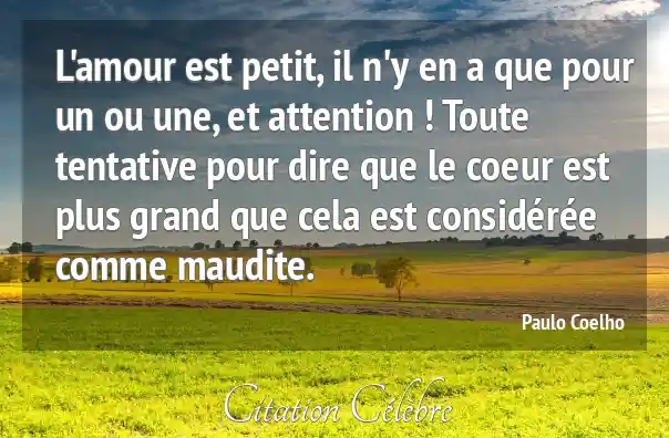 L'amour est petit, il n'y en a que pour un ou une, et attention ! Toute tentative pour dire que le coeur est plus grand que cela est considérée comme maudite.