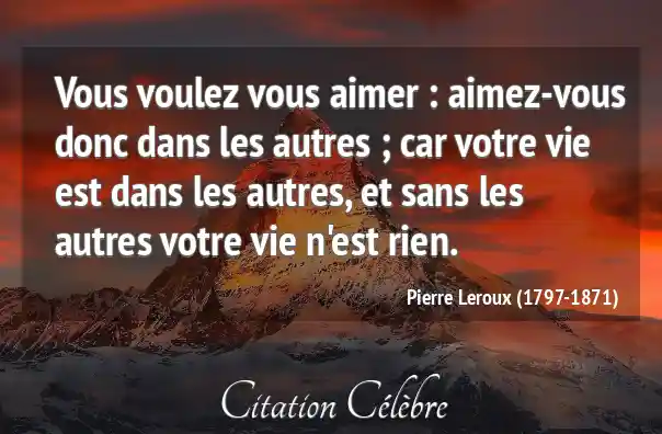 Vous voulez vous aimer : aimez-vous donc dans les autres ; car votre vie est dans les autres, et sans les autres votre vie n'est rien.