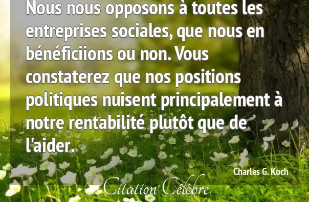Nous nous opposons à toutes les entreprises sociales, que nous en bénéficiions ou non. Vous constaterez que nos positions politiques nuisent principalement à notre rentabilité plutôt que de l'aider.