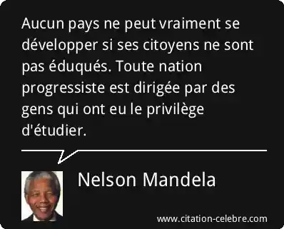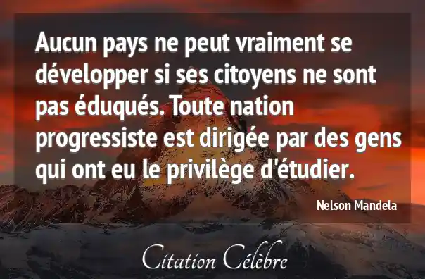 Aucun pays ne peut vraiment se développer si ses citoyens ne sont pas éduqués. Toute nation progressiste est dirigée par des gens qui ont eu le privilège d'étudier.