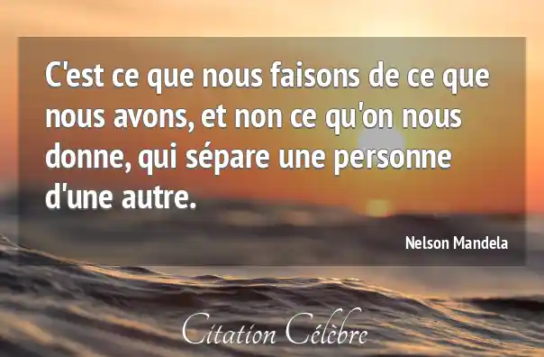 C'est ce que nous faisons de ce que nous avons, et non ce qu'on nous donne, qui sépare une personne d'une autre.