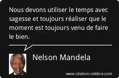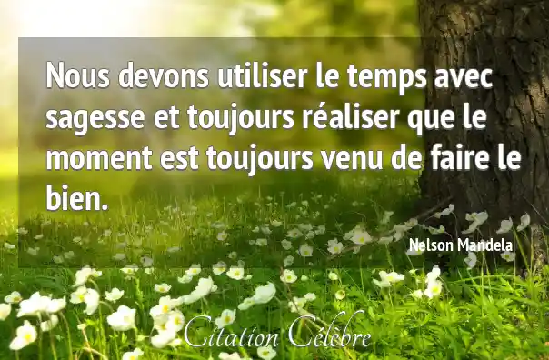 Nous devons utiliser le temps avec sagesse et toujours réaliser que le moment est toujours venu de faire le bien.