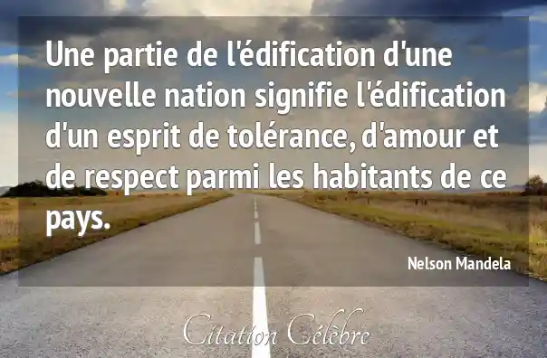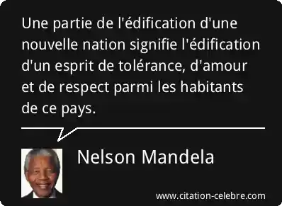 Une partie de l'édification d'une nouvelle nation signifie l'édification d'un esprit de tolérance, d'amour et de respect parmi les habitants de ce pays.