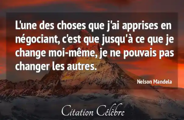 L'une des choses que j'ai apprises en négociant, c'est que jusqu'à ce que je change moi-même, je ne pouvais pas changer les autres.