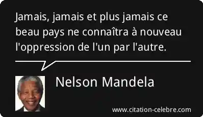 Citation Nelson Mandela autre : Jamais, jamais et plus jamais ce beau pays ne connaîtra...