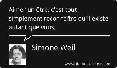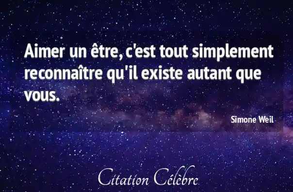 Aimer un être, c'est tout simplement reconnaître qu'il existe autant que vous.