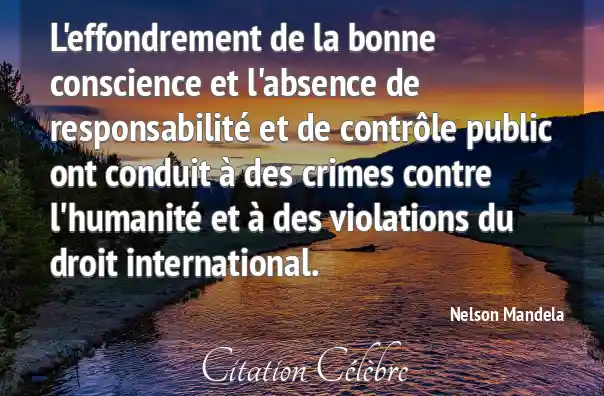 L'effondrement de la bonne conscience et l'absence de responsabilité et de contrôle public ont conduit à des crimes contre l'humanité et à des violations du droit international.
