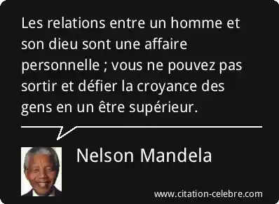 Les relations entre un homme et son dieu sont une affaire personnelle ; vous ne pouvez pas sortir et défier la croyance des gens en un être supérieur.