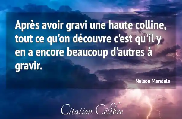 Après avoir gravi une haute colline, tout ce qu'on découvre c'est qu'il y en a encore beaucoup d'autres à gravir.