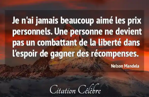 Je n'ai jamais beaucoup aimé les prix personnels. Une personne ne devient pas un combattant de la liberté dans l'espoir de gagner des récompenses.