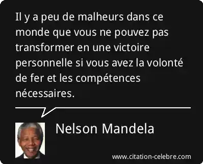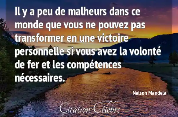Il y a peu de malheurs dans ce monde que vous ne pouvez pas transformer en une victoire personnelle si vous avez la volonté de fer et les compétences nécessaires.