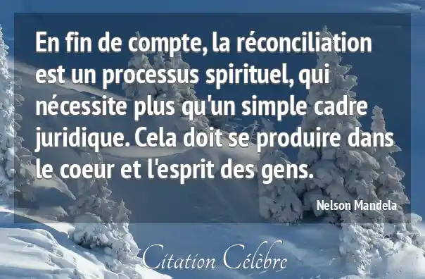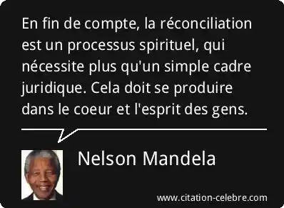 En fin de compte, la réconciliation est un processus spirituel, qui nécessite plus qu'un simple cadre juridique. Cela doit se produire dans le coeur et l'esprit des gens.