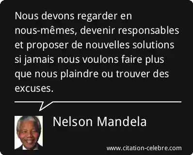 Nous devons regarder en nous-mêmes, devenir responsables et proposer de nouvelles solutions si jamais nous voulons faire plus que nous plaindre ou trouver des excuses.