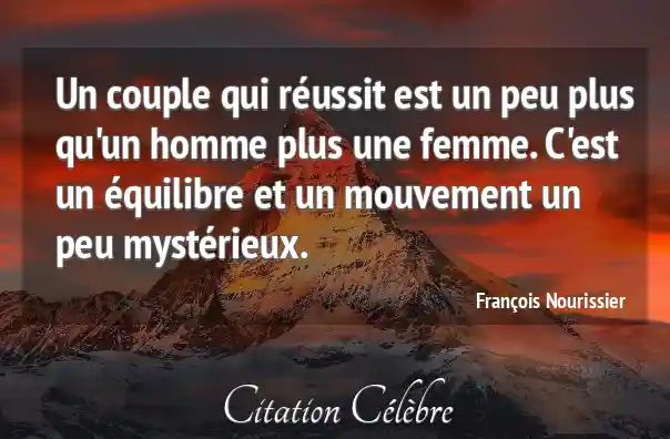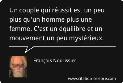 Un couple qui réussit est un peu plus qu'un homme plus une femme. C'est un équilibre et un mouvement un peu mystérieux.
