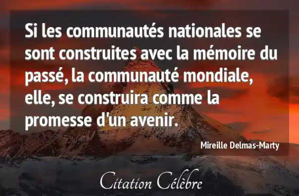Si les communautés nationales se sont construites avec la mémoire du passé, la communauté mondiale, elle, se construira comme la promesse d'un avenir.