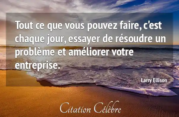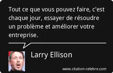 Tout ce que vous pouvez faire, c'est chaque jour, essayer de résoudre un problème et améliorer votre entreprise.