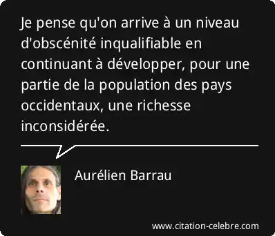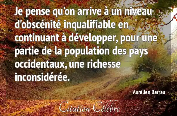 Je pense qu'on arrive à un niveau d'obscénité inqualifiable en continuant à développer, pour une partie de la population des pays occidentaux, une richesse inconsidérée.