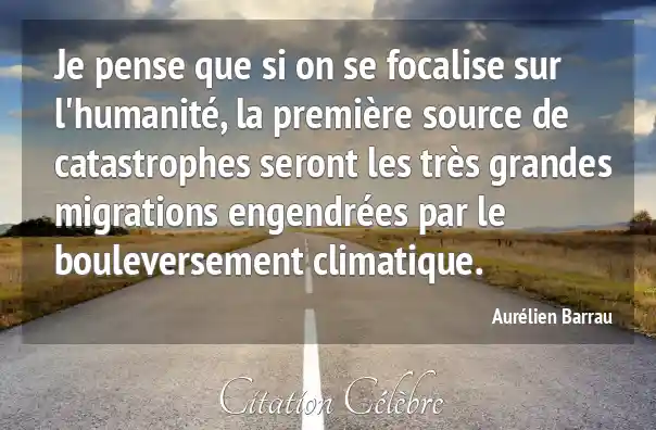Je pense que si on se focalise sur l'humanité, la première source de catastrophes seront les très grandes migrations engendrées par le bouleversement climatique.