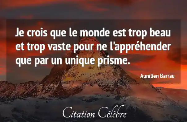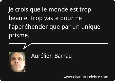 Je crois que le monde est trop beau et trop vaste pour ne l'appréhender que par un unique prisme.