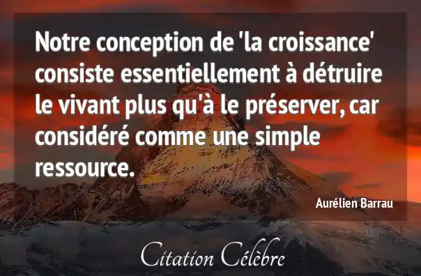 Notre conception de 'la croissance' consiste essentiellement à détruire le vivant plus qu'à le préserver, car considéré comme une simple ressource.