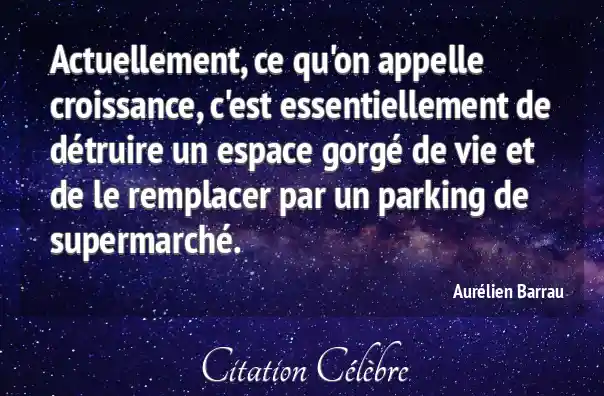 Actuellement, ce qu'on appelle croissance, c'est essentiellement de détruire un espace gorgé de vie et de le remplacer par un parking de supermarché.
