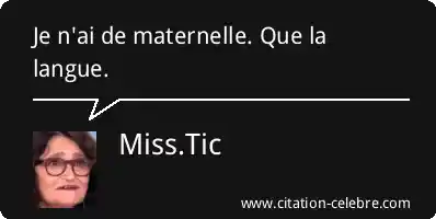 Citation Miss.Tic langue : Je n'ai de maternelle. Que la langue....