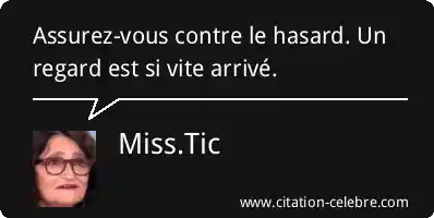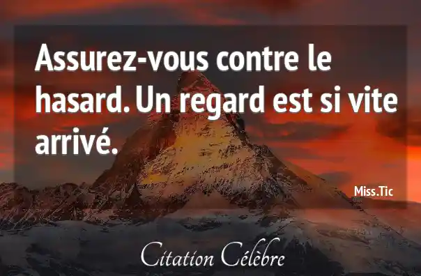 Citation Miss.Tic regard : Assurez-vous contre le hasard. Un regard est si vite arrivé....