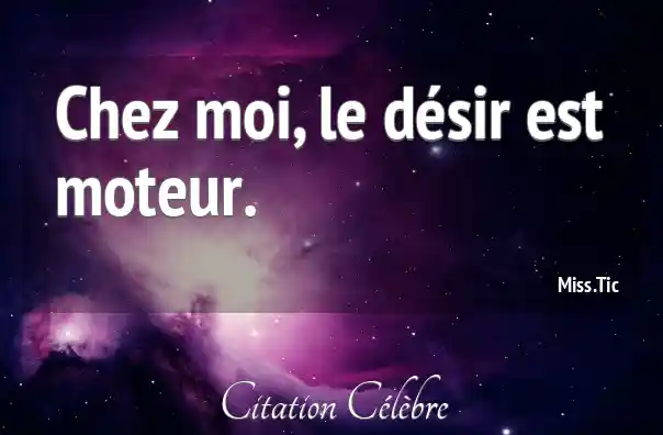 Citation Miss.Tic moi : Chez moi, le désir est moteur....