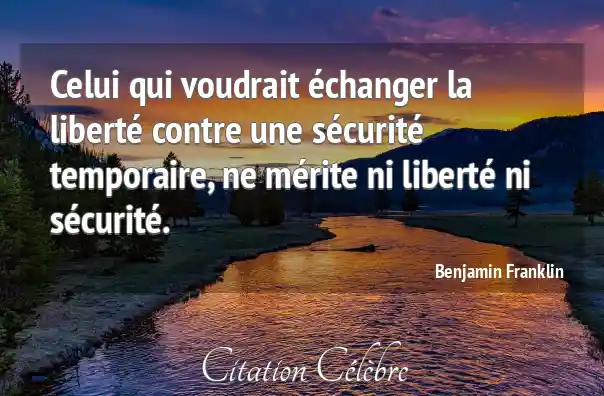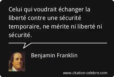 Celui qui voudrait échanger la liberté contre une sécurité temporaire, ne mérite ni liberté ni sécurité.