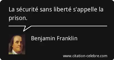 Citation Benjamin Franklin liberte : La sécurité sans liberté s'appelle la prison....