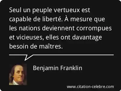 Seul un peuple vertueux est capable de liberté. À mesure que les nations deviennent corrompues et vicieuses, elles ont davantage besoin de maîtres.
